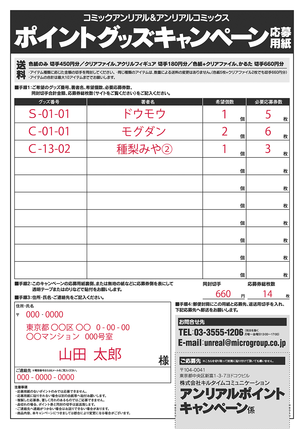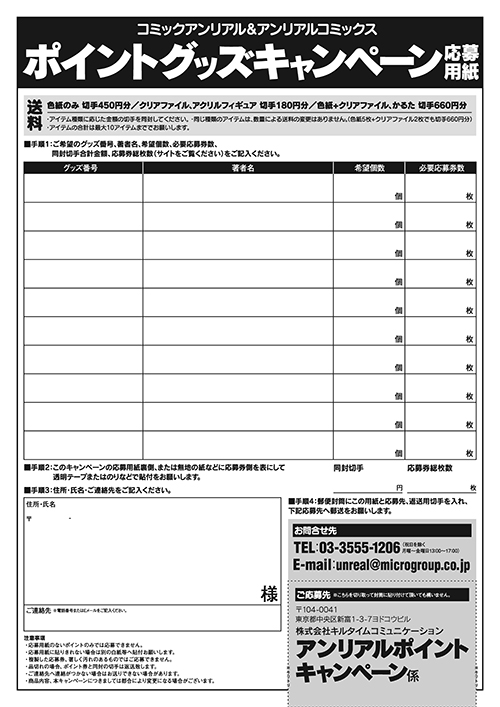 紙版コミックアンリアル(Vol.61~120)内の応募用紙をご利用ください。